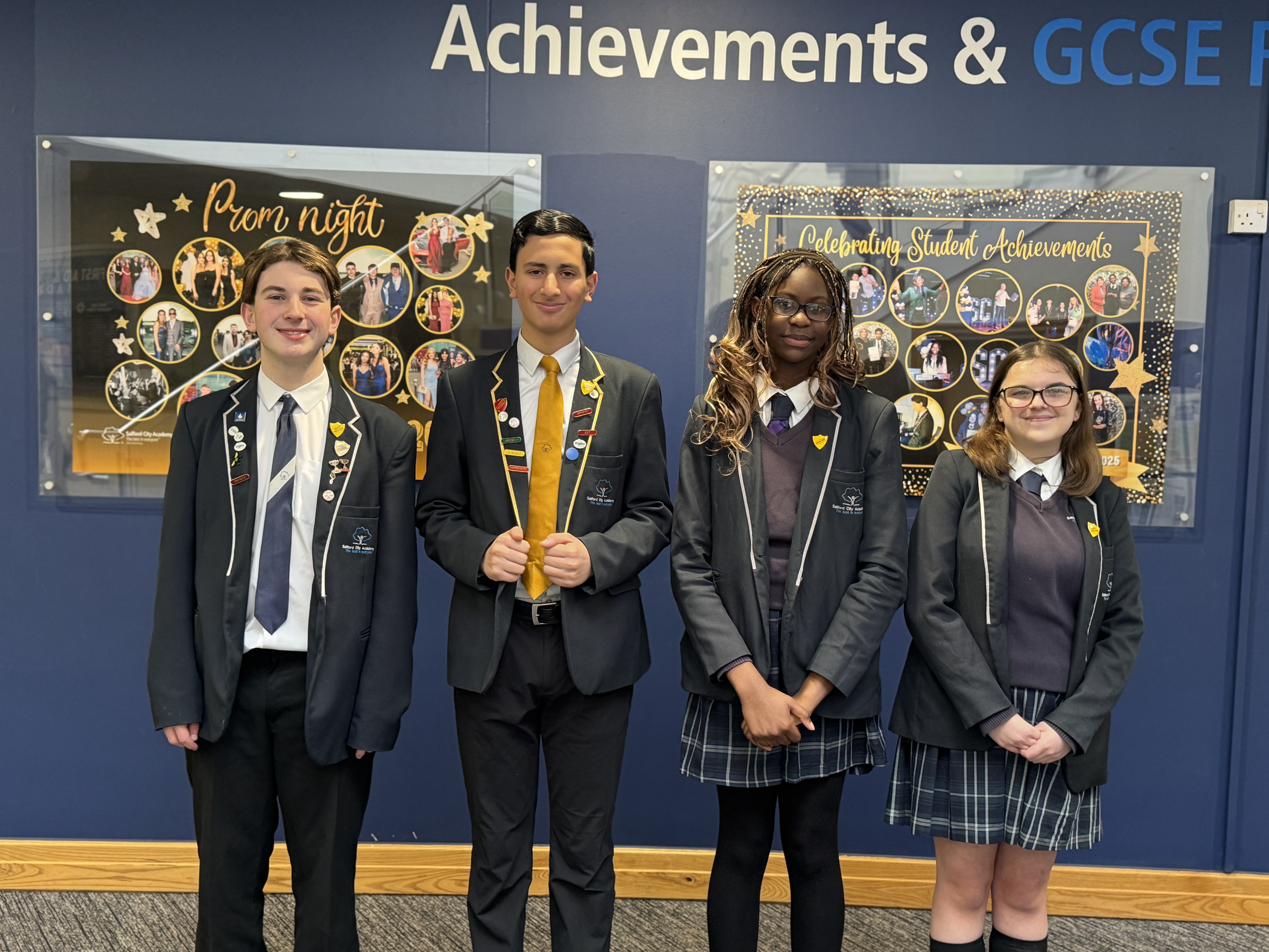It’s that time of year again when our staff have the wonderful opportunity to listen to Year 10 students pitch why they believe they should be part of our Prefect and Senior Prefect team. It’s always a pleasure to hear such passionate, thoughtful presentations, with students sharing how they hope to contribute to life at Salford City Academy. With so many impressive candidates, making a final decision was far from easy — but after much consideration, we are delighted to announce our new team.